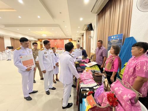 นายวิสุทธิ์ วงศ์สว่าง พัฒนาการอำเภอปากพลี พร้อมด้วยนางสาวพจนีย์ ศรีผา นักวิชาการพัฒนาชุมชนชำนาญการ ว่าที่ ร.ต.ปิยังกูร พวงแก้ว นักวิชาการพัฒนาชุมชนชำนาญการ และนางสาวอภิสรา ศรีเงิน อาสาพัฒนา ร่วมพิธีมอบลายผ้าพระราชทาน “ลายสิริราชพัสตราภรณ์” เพื่อมอบให้กับกลุ่มเป้าหมายรับมอบลายผ้าพระราชทานฯ